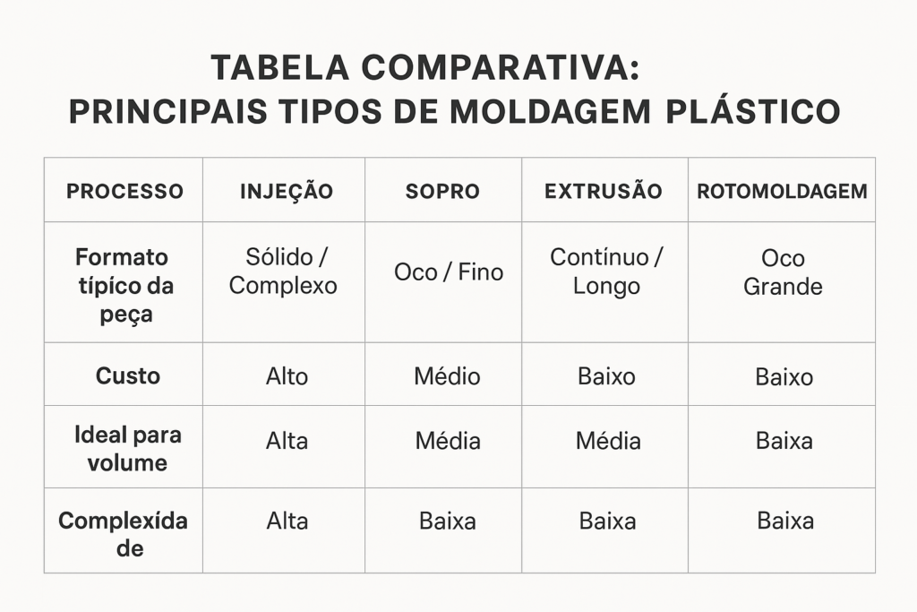 Tabela comparativa: principais tipos de moldagem de plástico